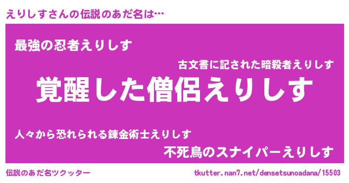| ヒーロー風カッコイイあだ名 | 『天弓騎士エリ』『仮面エリダー』 |