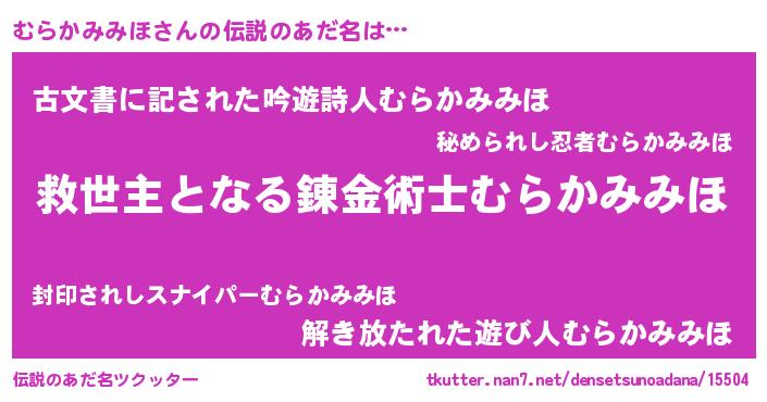 | 女子向けラノベタイトル風あだ名 | 『むらかみみほストレイドッグス』 |