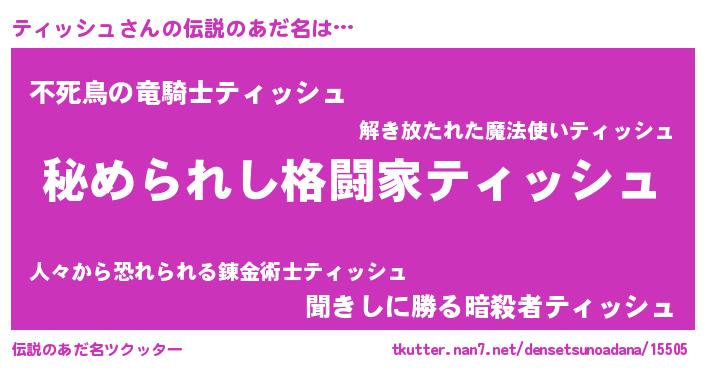 | ファンタジー風あだ名 | 『エターナルティッシュー』『ティフェル』 |