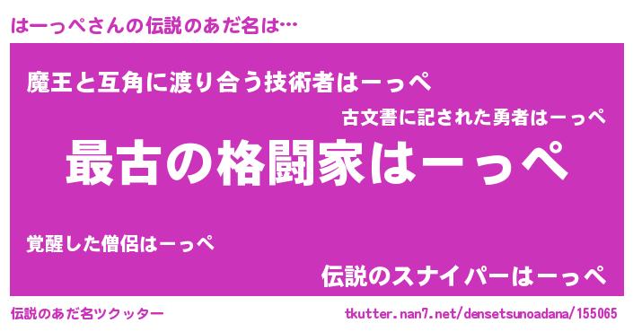 | ヒーロー風カッコイイあだ名 | 『仮面ハーダー』『ウルトラはーっぺマン』 |