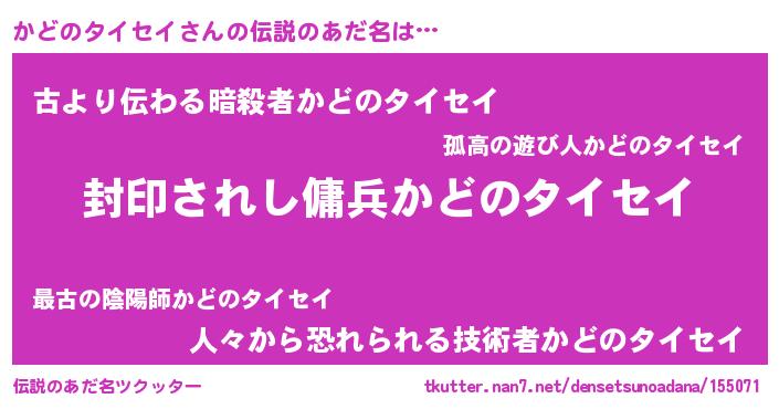 | ヒーロー風カッコイイあだ名 | 『仮面カドダー』『ネオカドノタイセイ』 |