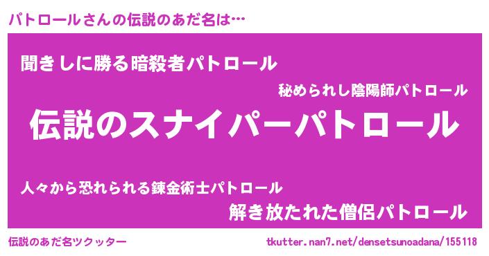 | 胡散臭い通販商品みたいなあだ名 | 『必ず成功する霊験あらたかなお札…その名も「パトロール」』 |