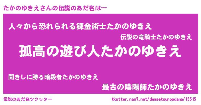 | 男性向けラノベタイトル風あだ名 | 『ダンジョンにたかのゆきえを求めるのは間違っているだろうか』 |