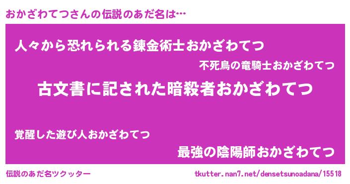 | 意味不明あだ名 | 『永久保存おかざわてつ』 |