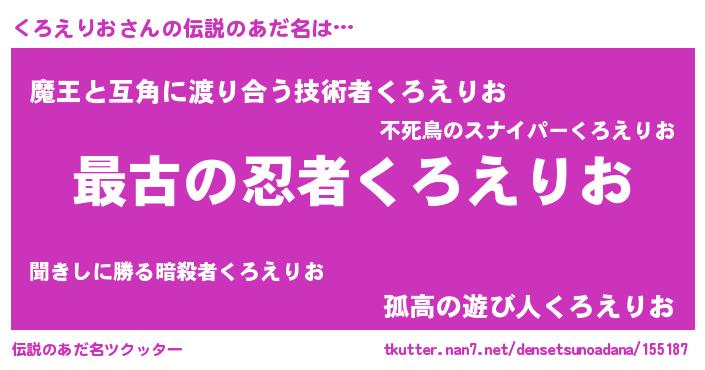 | 意味不明あだ名 | 『自称くろえりお』『ペロリンくろえりお』 |