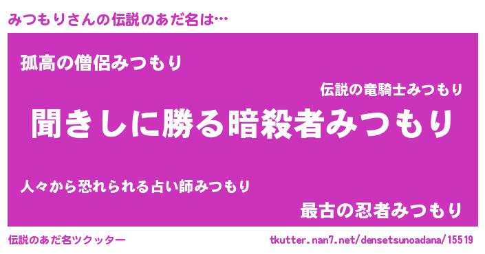 | 胡散臭い通販商品みたいなあだ名 | 『絶対に幸福をもたらす健康食品…その名も「みつもり」』 |