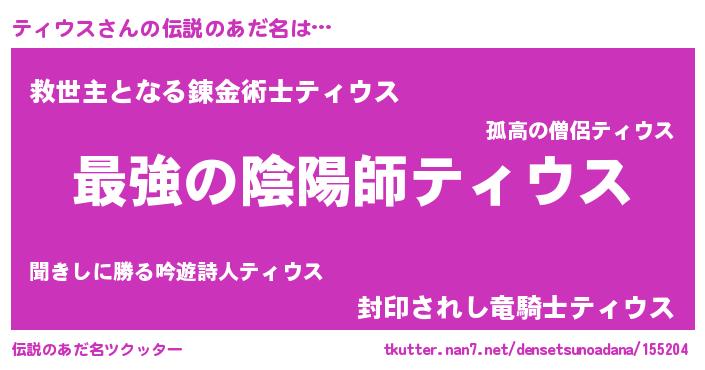 | 意味不明あだ名 | 『自称ティウス』『ティウスフォーエバー』 |