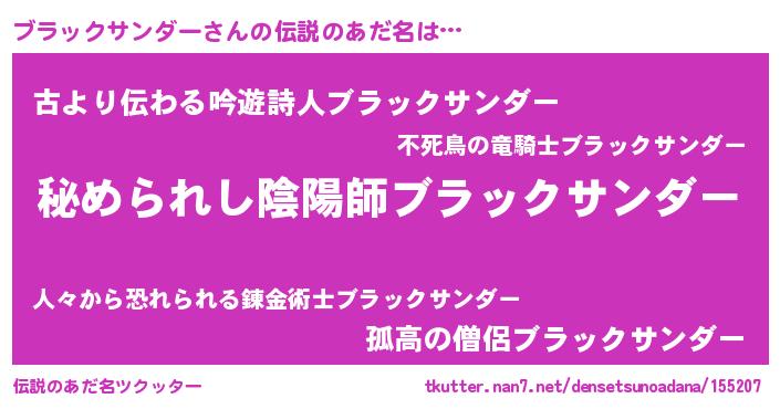 | ヒーロー風カッコイイあだ名 | 『ウルトラブラックサンダーマン』 |
