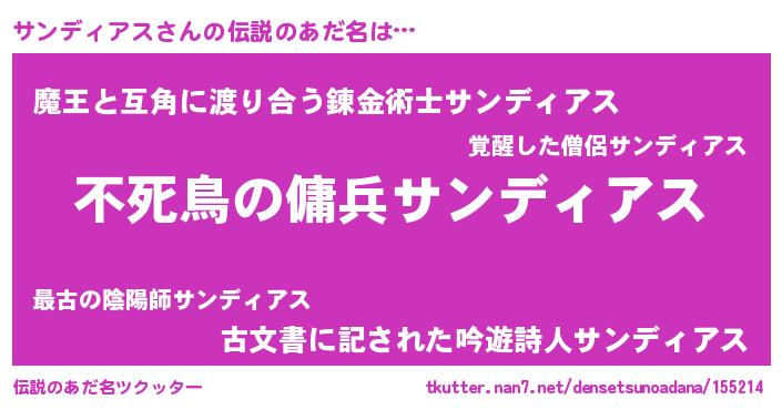 | ヒーロー風カッコイイあだ名 | 『スーパーサンディアス』『魔戒騎士サン』 |