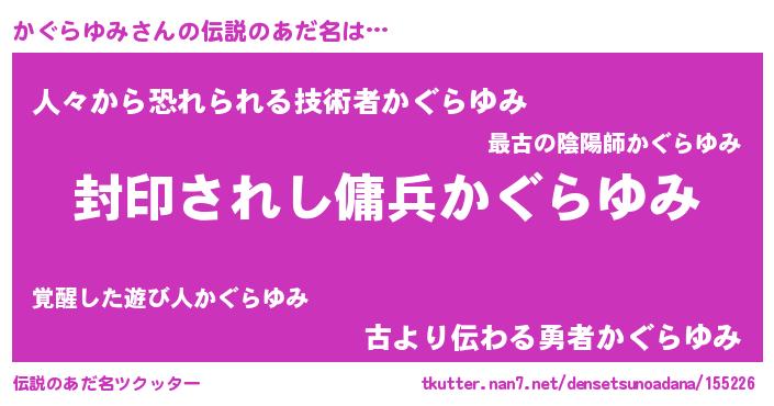 | 胡散臭い通販商品みたいなあだ名 | 『億万長者になれる水晶球…その名も「かぐらゆみ」』 |