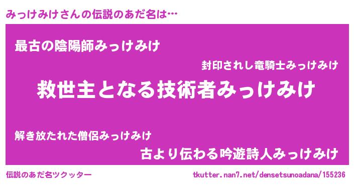 | ヒーロー風カッコイイあだ名 | 『究極戦士ミッケミケ』『ネオミッケミケ』 |