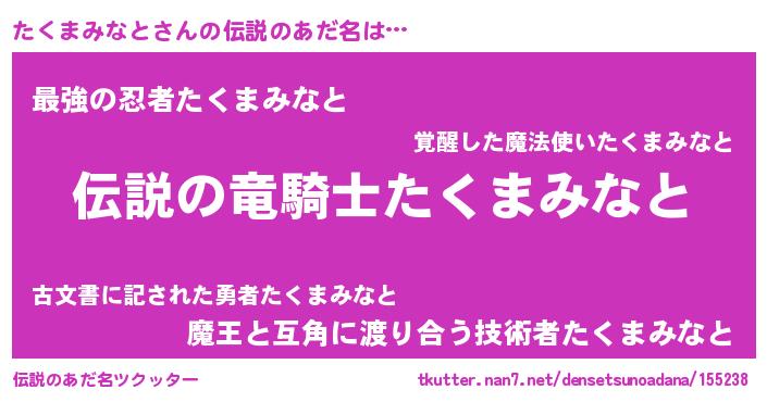 | ヒーロー風カッコイイあだ名 | 『スーパータクマミナト』『仮面タクダー』 |
