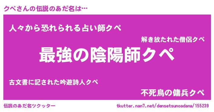 | ヒーロー風カッコイイあだ名 | 『ウルトラクペマン』『愛の使者クペ』 |