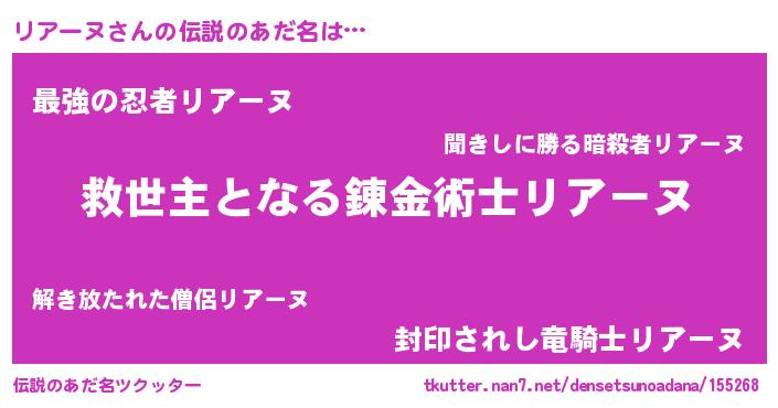 | 意味不明あだ名 | 『自称リアーヌ』『リアーヌフォーエバー』 |