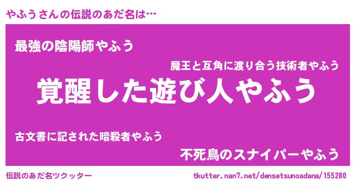 | 意味不明あだ名 | 『とにかく怪しいやふう』『自称やふう』 |