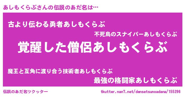 | ヘコむあだ名 | 『あしっ子』『あしもくらぶ(震え声)』 |