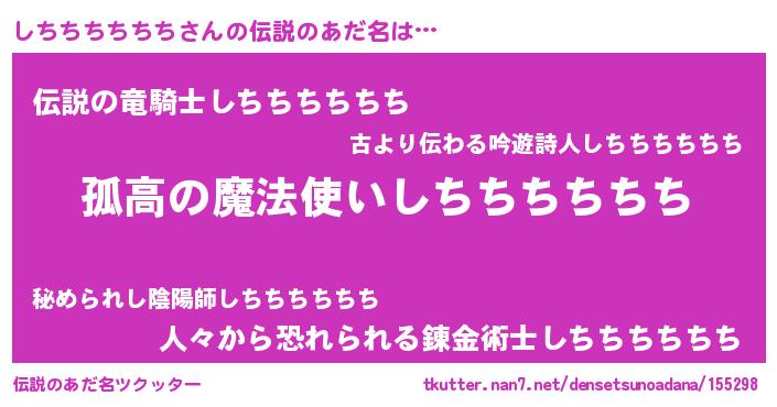 | 胡散臭い通販商品みたいなあだ名 | 『信頼と実績のサプリメント…その名も「しちちちちちち」』 |