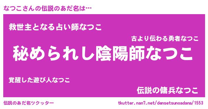 | ファンタジー風あだ名 | 『エターナルナツコー』『クインナット』 |