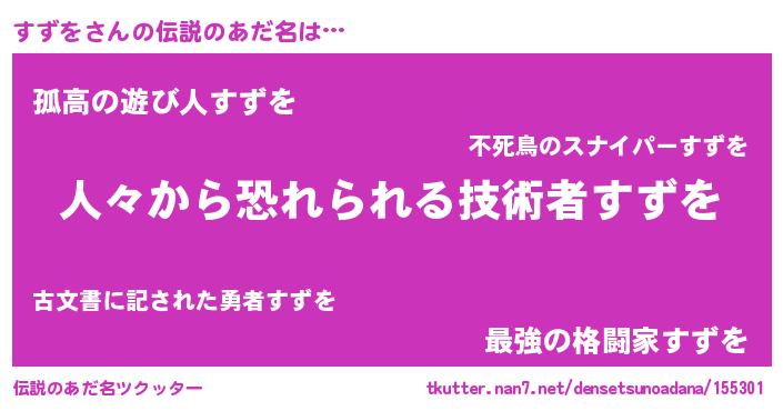 | 意味不明あだ名 | 『自称すずを』『眠気覚ましガムすずを味』 |