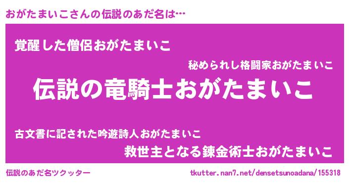 | ヒーロー風カッコイイあだ名 | 『スーパーオガタマイコ』『幻影騎士オガ』 |