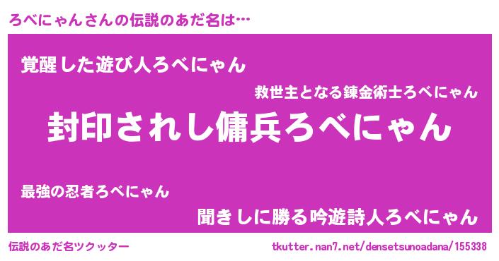 | ヒーロー風カッコイイあだ名 | 『スーパーロベニャン』『天弓騎士ロベ』 |