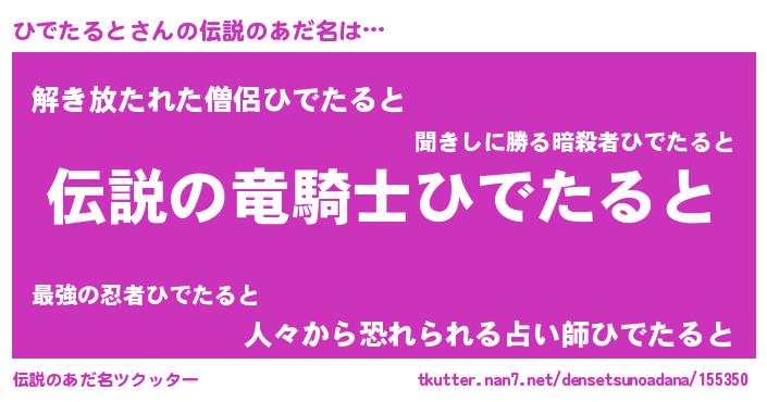| ヒーロー風カッコイイあだ名 | 『スーパーヒデタルト』『幻影騎士ヒデ』 |