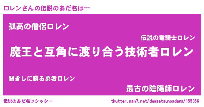 | ヒーロー風カッコイイあだ名 | 『愛の使者ロレン』『暗黒騎士ロレ』 |