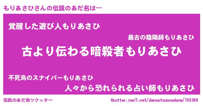 | 意味不明あだ名 | 『永久保存もりあさひ』 |