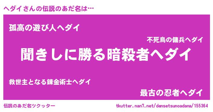 | ヒーロー風カッコイイあだ名 | 『ネオヘダイ』『仮面ヘダダー』 |