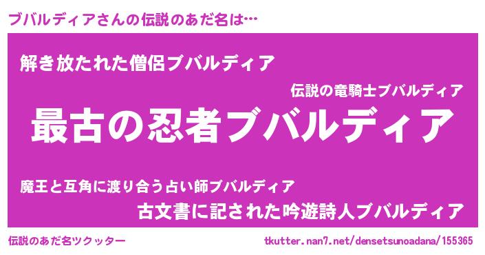 | 意味不明あだ名 | 『自称ブバルディア』 |