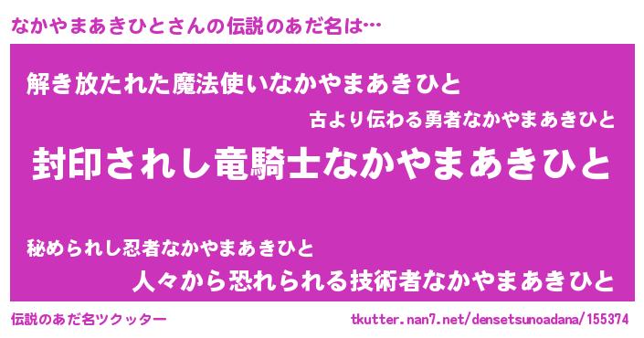 | 胡散臭い通販商品みたいなあだ名 | 『億万長者になれるブレスレット…その名も「なかやまあきひと」』 |