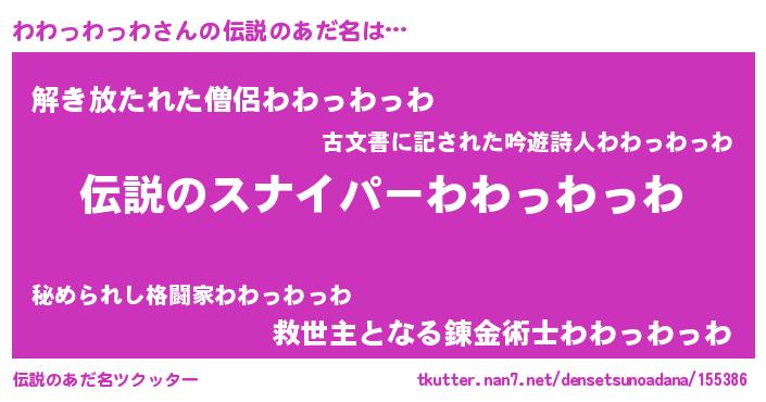 | 意味不明あだ名 | 『住所不定無職わわっわっわ(71歳)』 |