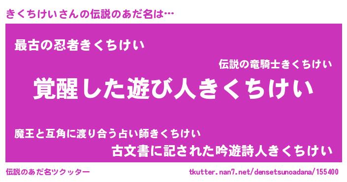 | 男性向けラノベタイトル風あだ名 | 『きくちけい~年齢イコール彼女いない歴の魔法使い~』 |