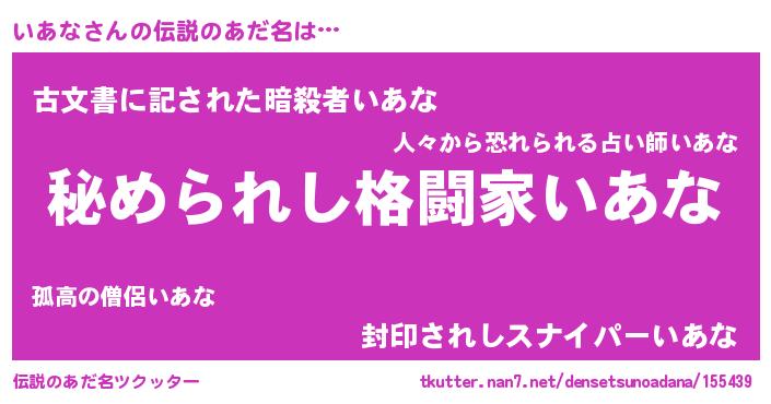 | 女子向けラノベタイトル風あだ名 | 『いあなの雑貨屋さん』『闇のいあな』 |