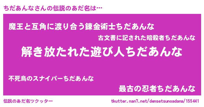 | ヒーロー風カッコイイあだ名 | 『魔戒騎士チダ』『正義の使者ちだあんな』 |