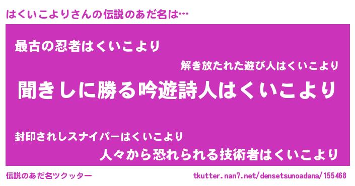 | 意味不明あだ名 | 『永久保存はくいこより』 |