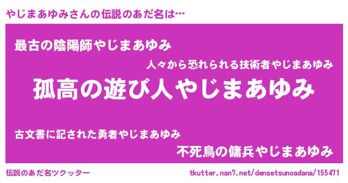 | 胡散臭い通販商品みたいなあだ名 | 『信頼と実績のペンダント…その名も「やじまあゆみ」』 |