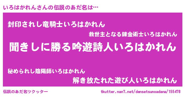 | ヒーロー風カッコイイあだ名 | 『ネオイロハカレン』『銀牙騎士イロ』 |