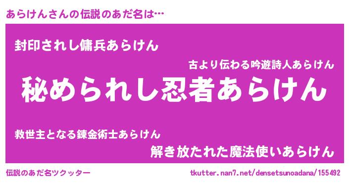 | 意味不明あだ名 | 『住所不定無職あらけん(43歳)』 |