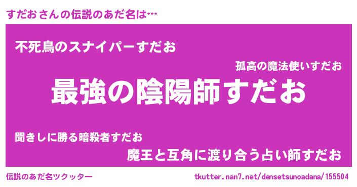 | 男性向けラノベタイトル風あだ名 | 『すだおに滅ぼされるだけの簡単なお仕事です』 |