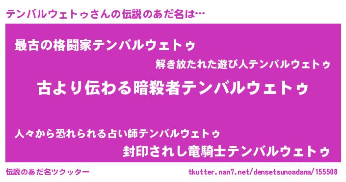 | 意味不明あだ名 | 『永久保存テンバルウェトゥ』 |