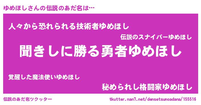 | 意味不明あだ名 | 『永久保存ゆめほし』『自称ゆめほし』 |