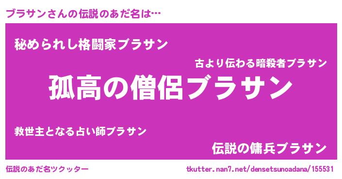| 女子向けラノベタイトル風あだ名 | 『ブラサンなんてお断りですっ。』 |