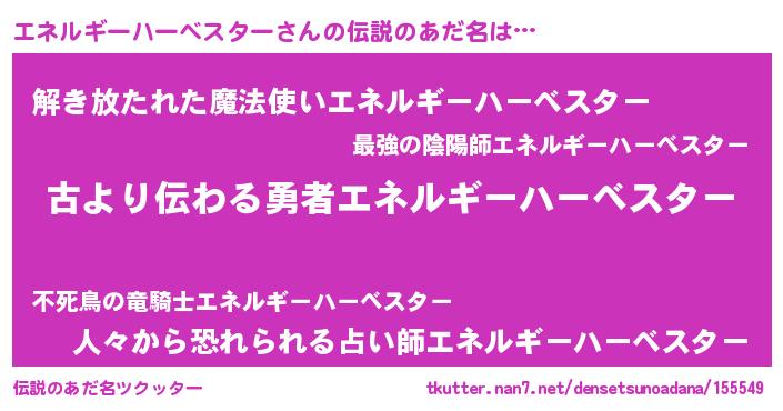 | 意味不明あだ名 | 『住所不定無職エネルギーハーベスター(98歳)』 |