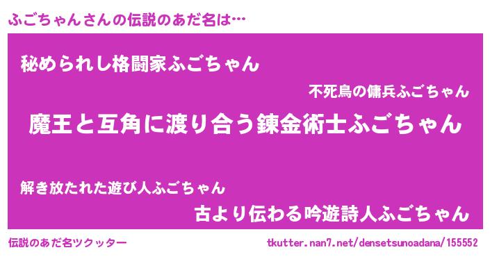 | ヒーロー風カッコイイあだ名 | 『仮面フゴダー』『超時空戦士フゴチャン』 |