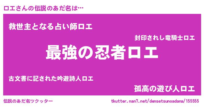 | 意味不明あだ名 | 『自称ロエ』『住所不定無職ロエ(43歳)』 |