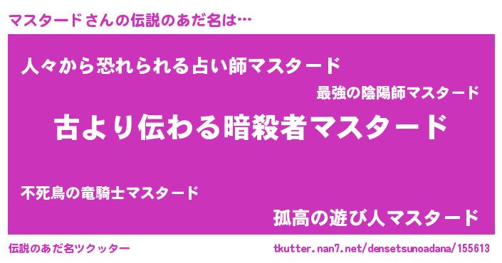 | 男性向けラノベタイトル風あだ名 | 『マスタードに滅ぼされるだけの簡単なお仕事です』 |
