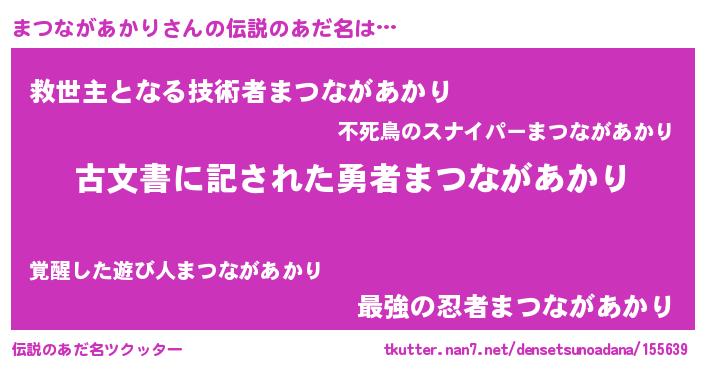 | 意味不明あだ名 | 『永久保存まつながあかり』 |