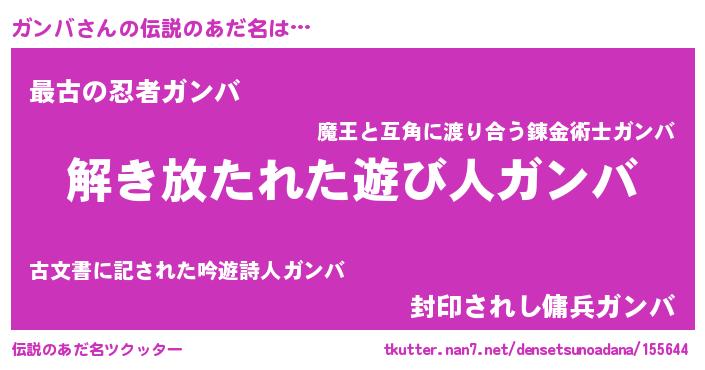 | ヒーロー風カッコイイあだ名 | 『最強戦士ガンバ』『幻影騎士ガン』 |