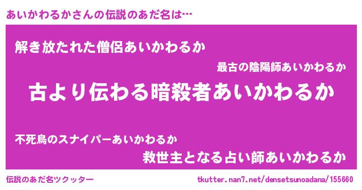 | 意味不明あだ名 | 『自称あいかわるか』 |
